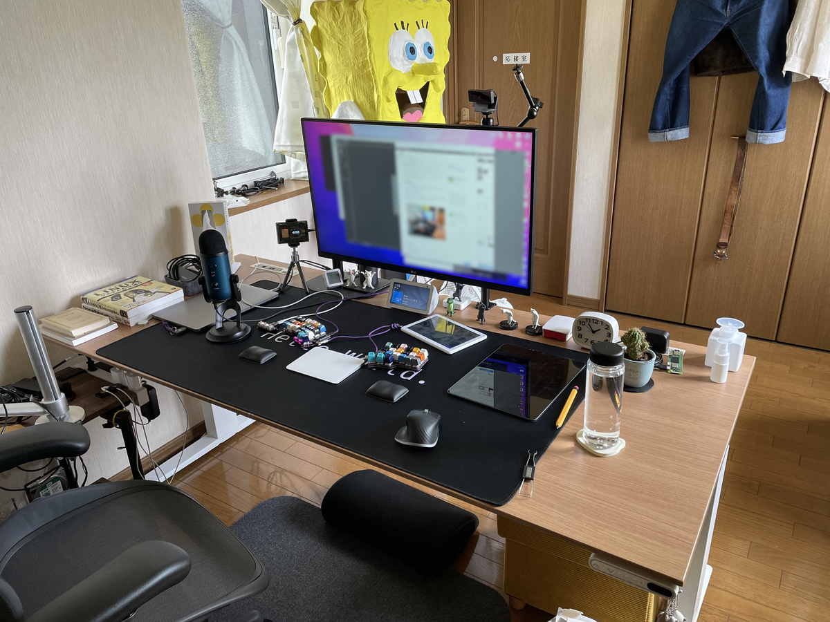 這張照片是我剛加入時的照片,看起來相當整潔。我們公司基本上會提供所有工作所需的物品,所以照片中的設備大部分都是公司提供的。由於公司能夠提供良好的工作環境,我沒有太多壓力,這是一個非常好的制度。